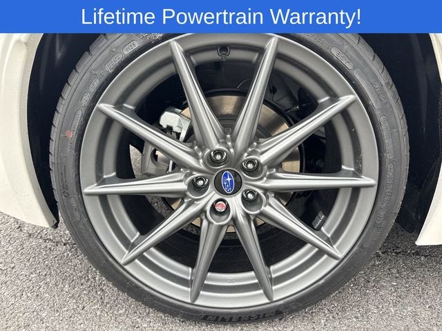 BRZ Limited is nicely equipped with 4-Wheel Disc Brakes, 8 Speakers, ABS brakes, Air Conditioning, Alloy wheels, AM/FM radio: SiriusXM, Anti-whiplash front head restraints, Auto High-beam Headlights, Automatic temperature control, Brake assist, Bumpers: body-color, Delay-off headlights, Driver door bin, Driver vanity mirror, Dual front impact airbags, Dual front side impact airbags, Electronic Stability Control, Emergency communication system: STARLINK Safety and Security (Subscription Required), Exterior Parking Camera Rear, Four wheel independent suspension, Front anti-roll bar, Front Bucket Seats, Front dual zone A/C, Front fog lights, Front reading lights, Fully automatic headlights, Heated door mirrors, Heated front seats, Illuminated entry, Knee airbag, Lane Departure Warning System, Leather Shift Knob, Leather steering wheel, Low tire pressure warning, Navigation System, Occupant sensing airbag, Outside temperature display, Overhead airbag, Overhead console, Panic alarm, Passenger door bin, Passenger vanity mirror, Power door mirrors, Power steering, Power windows, Radio data system, Rear anti-roll bar, Rear Parking Sensors, Rear window defroster, Remote keyless entry, Security system, Speed control, Speed-Sensitive Wipers, Spoiler, STARLINK/Apple CarPlay/Android Auto, Steering wheel mounted audio controls, Tachometer, Telescoping steering wheel, Tilt steering wheel, Traction control, Trip computer, Variably intermittent wipers, and Voltmeter.