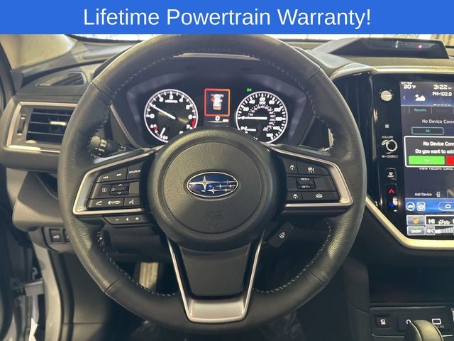 Ascent Limited is nicely equipped with Popular Package #1 (All-Weather Floor Liners, Cargo Tray, LED Upgrade, Rear Bumper Cover, and Splash Guards), Standard Model, 14 Speakers, 2nd Row Captain's Chairs Rear Seatback Protector, 3rd Row Bench Rear Seatback Protector, 3rd row seats: bench, 4-Wheel Disc Brakes, ABS brakes, Air Conditioning, Alloy wheels, AM/FM radio: SiriusXM with 360L, Apple CarPlay & Android Auto, Auto High-beam Headlights, Auto-dimming Rear-View mirror, Automatic temperature control, Brake assist, Bumpers: body-color, Compass, Delay-off headlights, Driver door bin, Driver vanity mirror, Dual front impact airbags, Dual front side impact airbags, Electronic Stability Control, Emergency communication system: MySubaru Companion (5-years free), Exterior Parking Camera Rear, Four wheel independent suspension, Front anti-roll bar, Front Bucket Seats, Front Center Armrest, Front dual zone A/C, Front fog lights, Front reading lights, Fully automatic headlights, Garage door transmitter: HomeLink, harman/kardon® Speakers, Heated door mirrors, Heated Front Bucket Seats, Heated front seats, Heated rear seats, Heated steering wheel, Illuminated entry, Knee airbag, Leather Shift Knob, Leather steering wheel, Low tire pressure warning, Memory seat, Navigation system: MySubaru Navigator (1-year trial), Occupant sensing airbag, Outside temperature display, Overhead airbag, Overhead console, Panic alarm, Passenger door bin, Passenger vanity mirror, Perforated Leather-Trimmed Upholstery, Power door mirrors, Power driver seat, Power Liftgate, Power moonroof, Power passenger seat, Power steering, Power windows, Radio data system, Rear air conditioning, Rear anti-roll bar, Rear reading lights, Rear window defroster, Rear window wiper, Reclining 3rd row seat, Remote keyless entry, Security system, Speed control, Speed-sensing steering, Split folding rear seat, Spoiler, Steering wheel mounted audio controls, Tachometer, Telescoping steering wheel, Tilt steering wheel, Traction control, Trip computer, Turn signal indicator mirrors, Variably intermittent wipers, and Wireless Charger.
