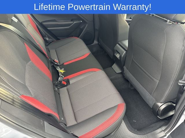 Impreza 2.5RS is nicely equipped with 4-Wheel Disc Brakes, 6 Speakers, ABS brakes, Air Conditioning, Alloy wheels, AM/FM radio: SiriusXM, Anti-whiplash front head restraints, Auto High-beam Headlights, Automatic temperature control, Brake assist, Bumpers: body-color, Driver door bin, Driver vanity mirror, Dual front impact airbags, Dual front side impact airbags, Electronic Stability Control, Emergency communication system: MySubaru Companion (5-years free), Exterior Parking Camera Rear, Four wheel independent suspension, Front anti-roll bar, Front Bucket Seats, Front Center Armrest, Front dual zone A/C, Front fog lights, Front reading lights, Fully automatic headlights, Heated door mirrors, Heated Front Bucket Seats, Heated front seats, Illuminated entry, Knee airbag, Leather Shift Knob, Low tire pressure warning, Occupant sensing airbag, Outside temperature display, Overhead airbag, Overhead console, Panic alarm, Passenger door bin, Passenger vanity mirror, Power door mirrors, Power steering, Power windows, Radio data system, Radio: Subaru 11.6 Multimedia Plus System, Rear anti-roll bar, Rear seat center armrest, Rear side impact airbag, Rear window defroster, Rear window wiper, Remote keyless entry, RS Cloth Upholstery, Security system, Speed control, Speed-sensing steering, Split folding rear seat, Spoiler, Steering wheel mounted audio controls, Tachometer, Telescoping steering wheel, Tilt steering wheel, Traction control, Trip computer, Turn signal indicator mirrors, and Variably intermittent wipers.