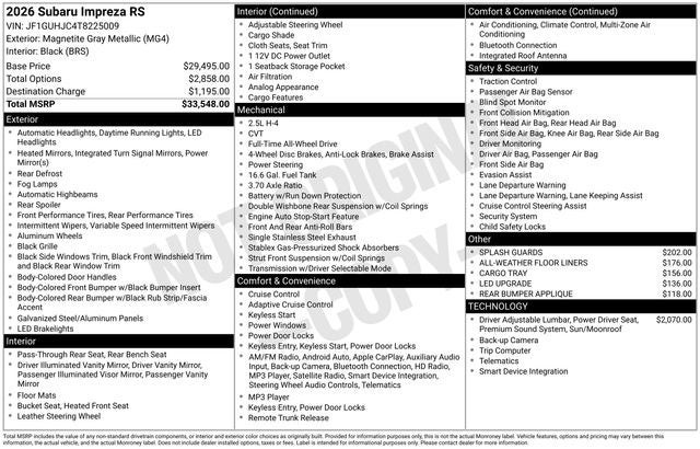 We invite you to experience the exceptional 2026 Subaru Impreza 2.5RS for yourself. Visit our showroom today and let us demonstrate how this remarkable vehicle can enhance your driving experience and elevate your lifestyle.