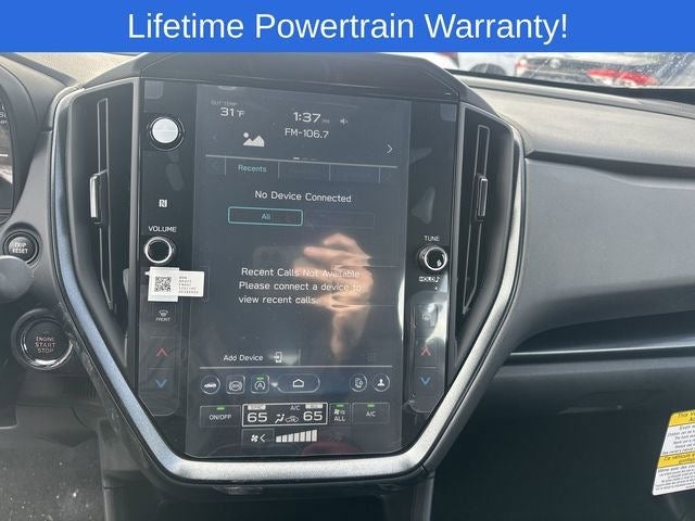 - Radio: Subaru 11.6" Multimedia Plus System -inc: valet mode, AM/FM stereo, HD Radio, multi-touch gesture high resolution display screen, voice activated controls, Bluetooth® audio streaming and hands-free phone connectivity, Bluetooth® hands-free SMS text messaging connectivity, iPod control capability, smartphone integration: wired and wireless Android Auto w/full screen view, wireless Apple CarPlay w/full screen view and wireless connection, USB and Over The Air (OTA) audio system update, audio system and Bluetooth® steering wheel control switches, 6 speakers (2 dash panel tweeter, 2 front door, 2 rear door), illuminated 3.5mm auxiliary input jack, illuminated USB A and C input charge ports, roof mounted satellite and connected services, roof mounted black antenna, connected services operation indicator, SOS emergency assistance (red button) and ehanced roadside assistance (blue i-button)
