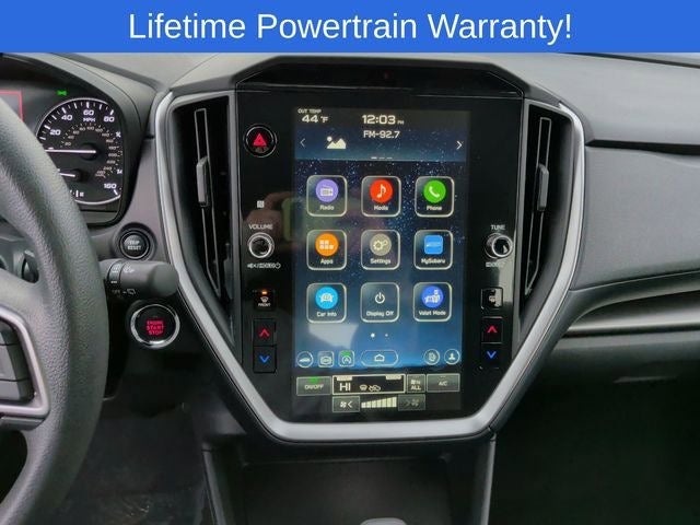 - Radio: Subaru 11.6" Multimedia Plus System -inc: valet mode, AM/FM stereo, HD Radio, multi-touch gesture high resolution display screen, voice activated controls, Bluetooth® audio streaming and hands-free phone connectivity, Bluetooth® hands-free SMS text messaging connectivity, iPod control capability, smartphone integration: wired and wireless Android Auto w/full screen view, wireless Apple CarPlay w/full screen view and wireless connection, USB and Over The Air (OTA) audio system update, audio system and Bluetooth® steering wheel control switches, 6 speakers (2 dash panel tweeter, 2 front door, 2 rear door), illuminated 3.5mm auxiliary input jack, illuminated USB A and C input charge ports, roof mounted satellite and connected services, roof mounted black antenna, connected services operation indicator, SOS emergency assistance (red button) and ehanced roadside assistance (blue i-button)
