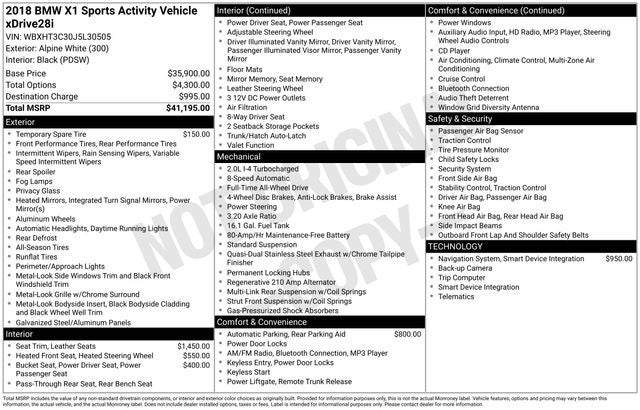 Alpine White 2018 BMW X1 xDrive28i 4D Sport Utility AWD 8-Speed Automatic 2.0L 4-Cylinder DOHC 16V TwinPower Turbo 22/31 City/Highway MPG