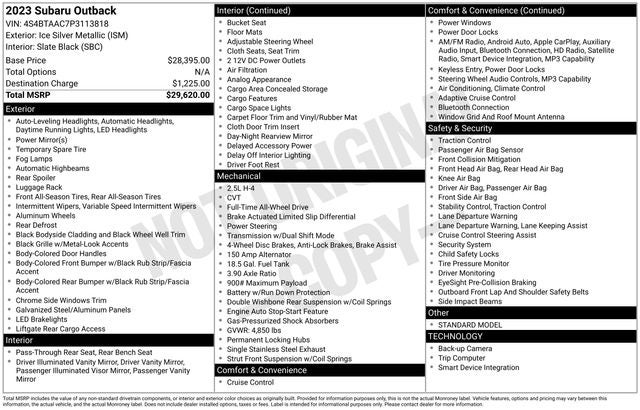 With its rugged good looks and advanced safety features, the Outback is the perfect companion for your next adventure. Whether you're exploring the great outdoors or navigating the daily commute, this versatile SUV is ready to handle it all. Experience the perfect blend of capability, comfort, and style with this exceptional 2023 Subaru Outback 2.5i.